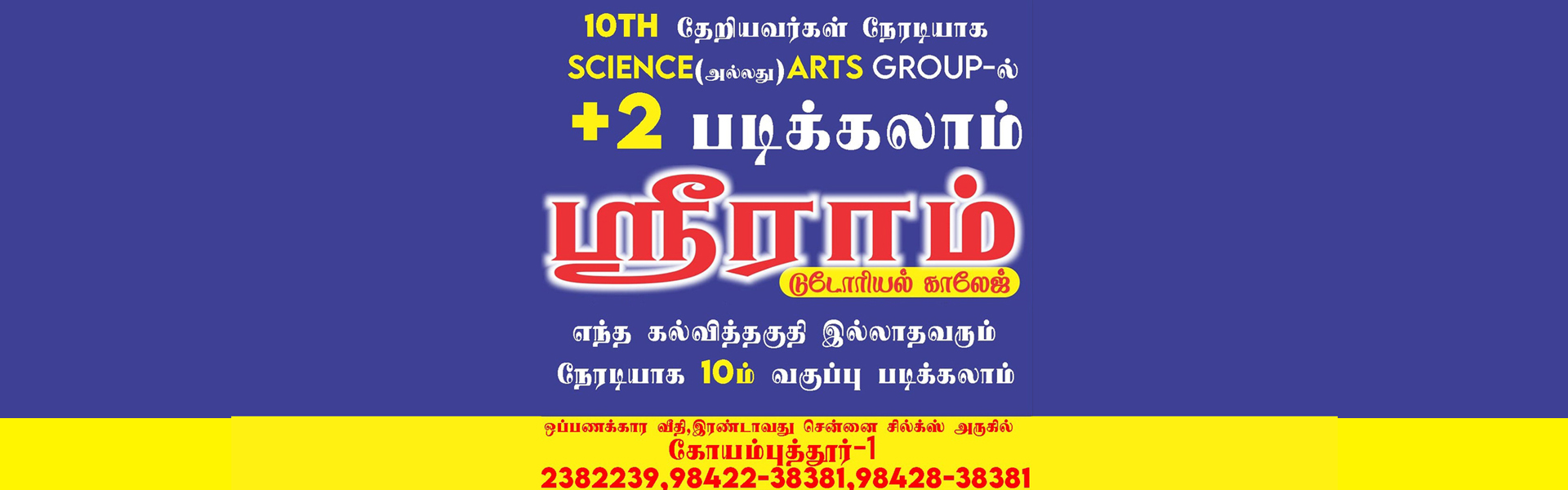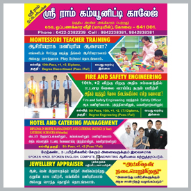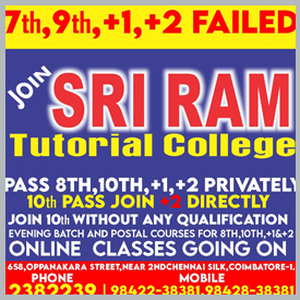 We aim to provide an excellent education for students We welcome you to the No.1 tutorial college based at Coimbatore, Tamilnadu, India. This institution was founded before 25 years marking a remarkable success in the arena of tutorial courses. As an successful institution we are very delighted and indeed proud in educating our students with well experienced staffs. Our institution is located at the prime location of the city known as Oppanakara Street which is nearby to townhall.