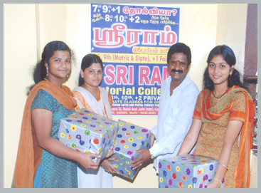 Director of Sri Ram Tutorial College Mr.Ramakrishnan distributing prizes for high scored strudents.